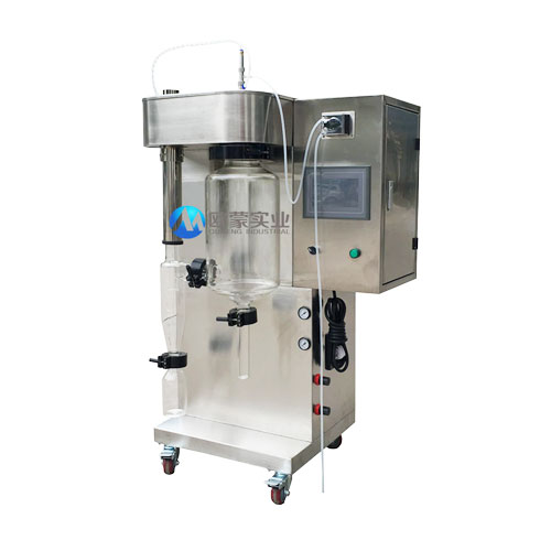 傳統(tǒng)的噴霧干燥過程分等速和減速兩階段。在等速階段,水分蒸發(fā)是在液滴表面發(fā)生,蒸發(fā)速度由蒸汽通過周圍氣膜的擴散速度控制,其動力是周圍熱風與液滴的溫度差,溫度差越大蒸發(fā)速度越快,水分通過顆粒的擴散速度大于蒸發(fā)速度。然后,當擴散速度降低而不能再維持顆粒表面的飽和時,蒸發(fā)速度開始減慢,干燥開始進入減速階段。在減速階段,顆粒溫度開始上升,干燥結(jié)束,此時物料溫度接近周圍空氣溫度。歐蒙相對于傳統(tǒng)機器而言擁有一體化的菜單式微處理控制器,可以直接設(shè)置***溫度、氣流量、泵速、自動變頻等,實現(xiàn)數(shù)據(jù)采集以及過程監(jiān)控和控制。自動吸取攪拌泵,使樣品的液體從容器中通過噴嘴進入千燥腔,同時壓縮空氣從外層套管進入干燥腔,使液體微?;?熱空氣從.上層進入與噴霧過后的液體微粒融合,樣品開始干燥,千燥后的粉粒通過旋風分離器與廢氣分離后進入收集瓶,廢氣則通過軟管直接排到大氣或空氣過濾裝置。